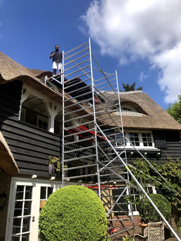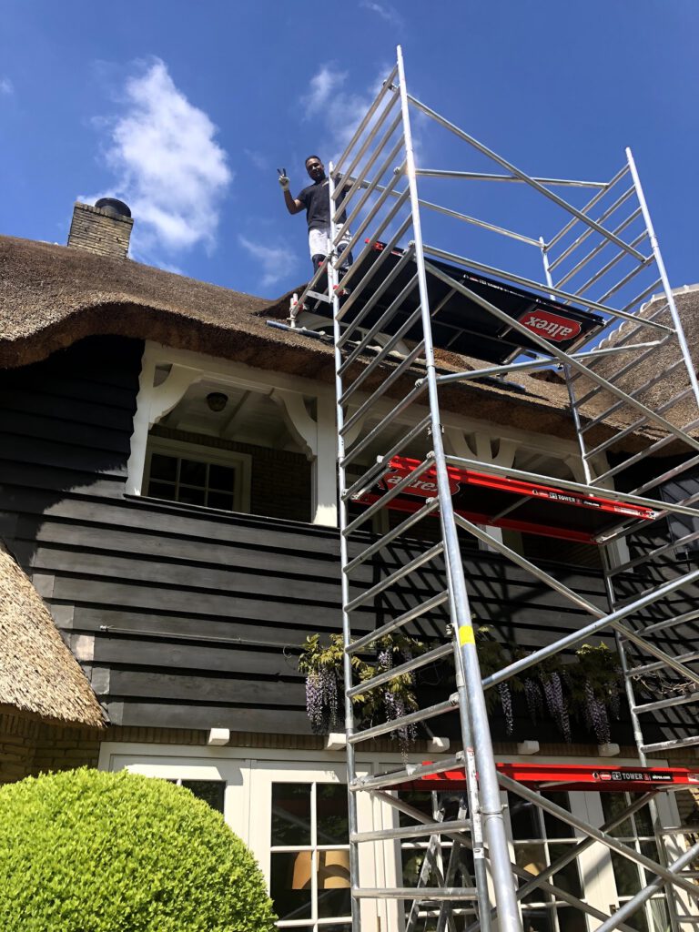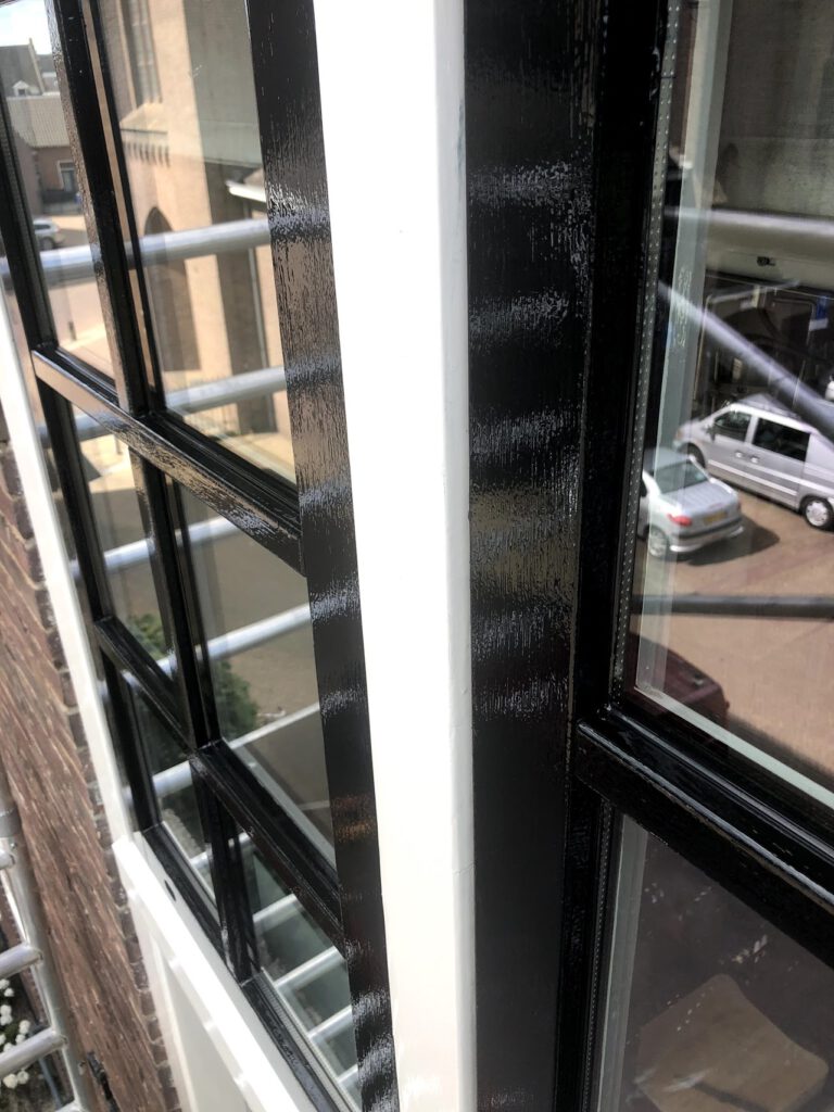 Een groot pand in Wijk bij Duurstede is door ons volledig gerestaureerd. Door achterstallig onderhoud was er op diverse plekken houtrot ontstaan. Dit is professioneel verwijderd, opgevuld met houtvuller, en vervolgens gegrond en afgelakt.