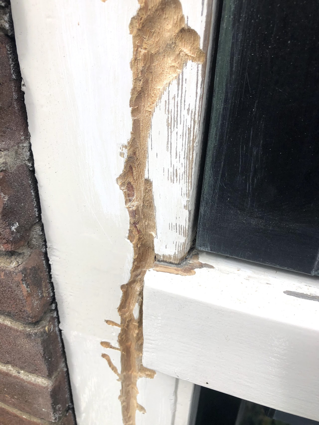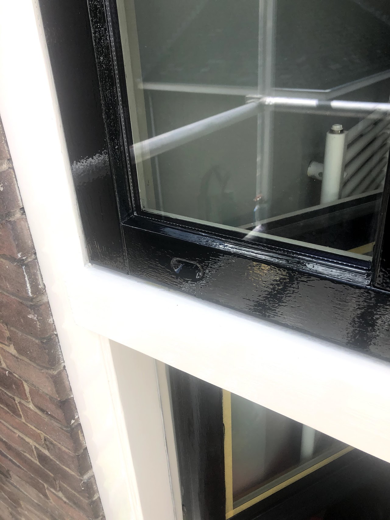 Een groot pand in Wijk bij Duurstede is door ons volledig gerestaureerd. Door achterstallig onderhoud was er op diverse plekken houtrot ontstaan. Dit is professioneel verwijderd, opgevuld met houtvuller, en vervolgens gegrond en afgelakt.